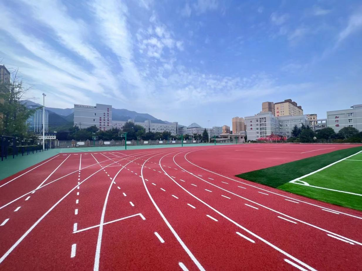 陕西省山阳中学笃定践行立德树人根本任务,以提高学生体质健康水平为己任,强化体育、健康工作理念,深化体教融合发展,更好发挥体育协同育人的作用,促进青少年身心健康成长。为给学生们提供优质健康的运动环境山阳中学选用了混合型塑胶跑道。